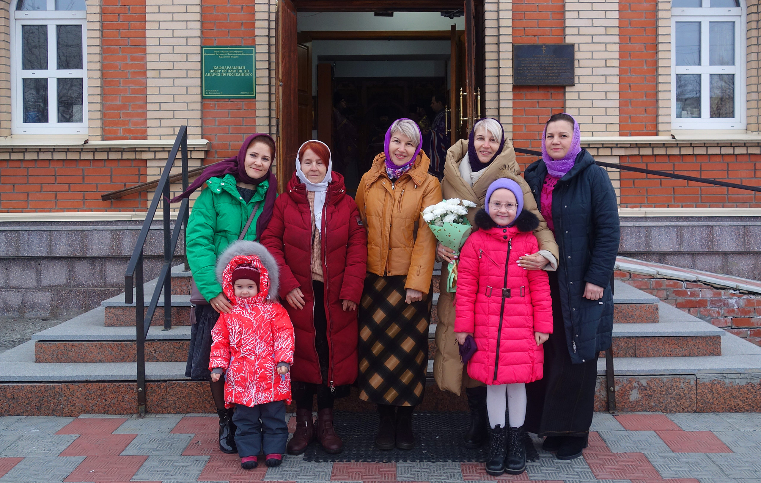 За Литургией молились игумения Михаило-Архангельского женского монастыря с. Малоирменки Ордынского района Мария (Серопян) и сестры милосердия Сестричества святителя Луки г. Карасука.