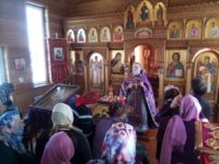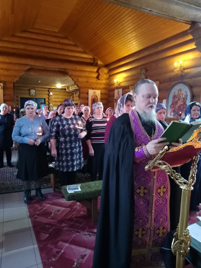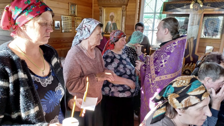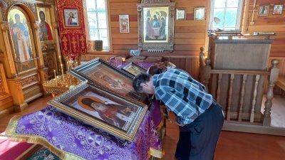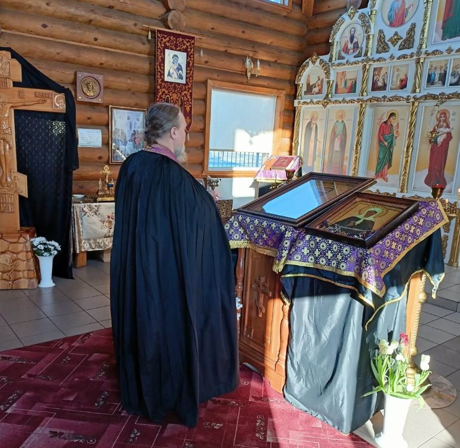 Во время пребывания святынь в храмах Баганского района молящиеся приняли участие в Таинстве Соборования — в одном из храмов была совершена Пассия с чтением акафиста Страстям Христовым.