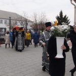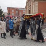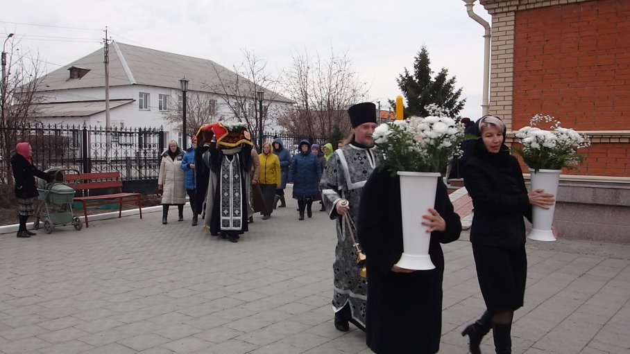 После Великого славословия при пении «Святый Боже, Святый Крепкий, Святый Бессмертный» епископ Филипп и клирики кафедрального собора вынесли Святую Плащаницу из храма и под погребальный колокольный звон обнесли ее крестным ходом в сопровождении прихожан вокруг собора: совершили чин погребения Иисуса Христа, символизирующий шествие жен-мироносиц ко Гробу Спасителя.
