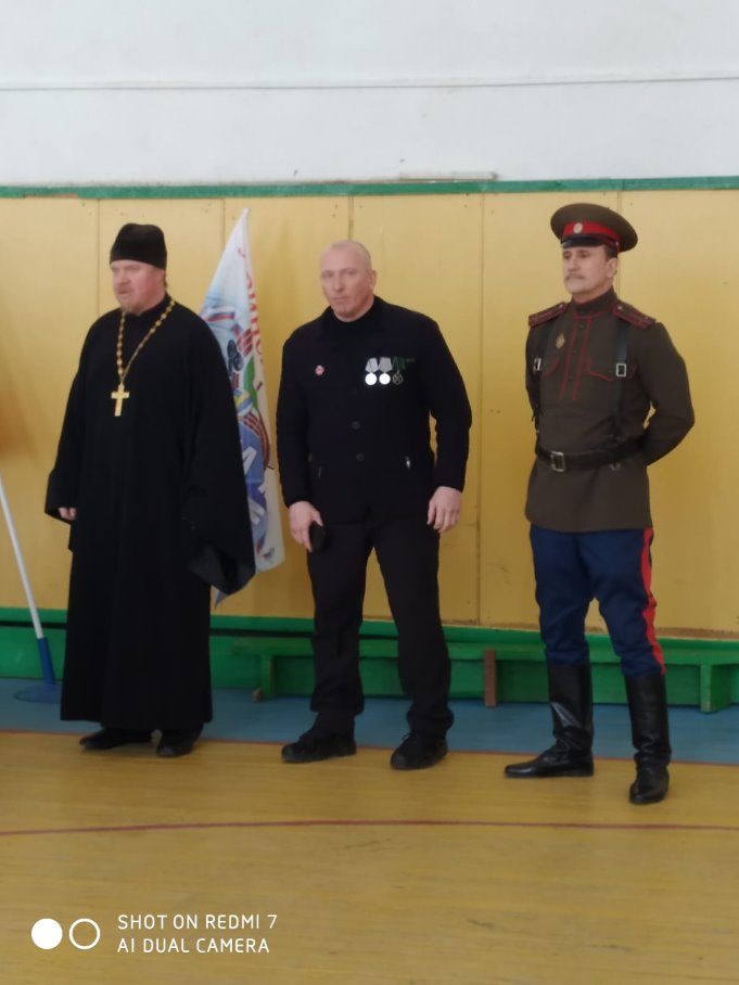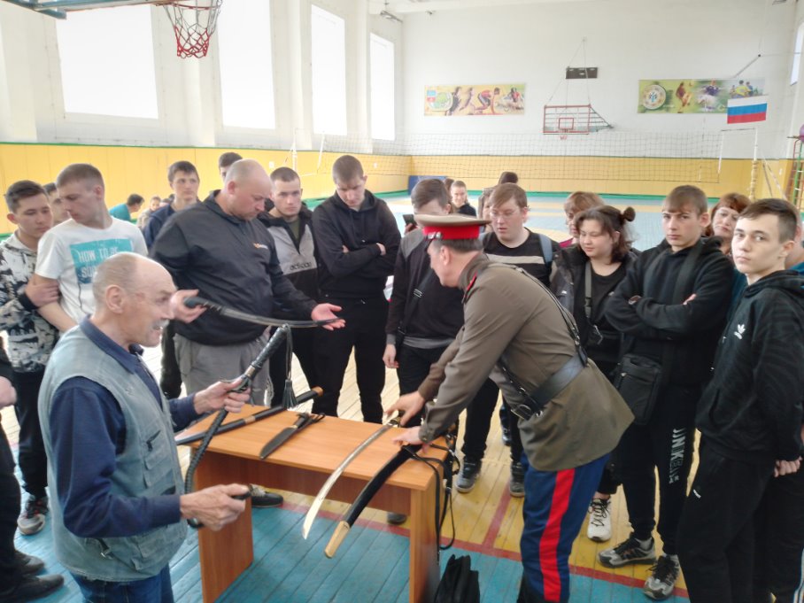 Батюшка поздравил студентов и педагогов учебного заведения с Пасхой и рассказал о празднике. Участник СВО рассказал о специальной военной операции на Украине, откуда он недавно вернулся. Кулаев В.В. рассказал о казачестве и познакомил ребят с оружием.