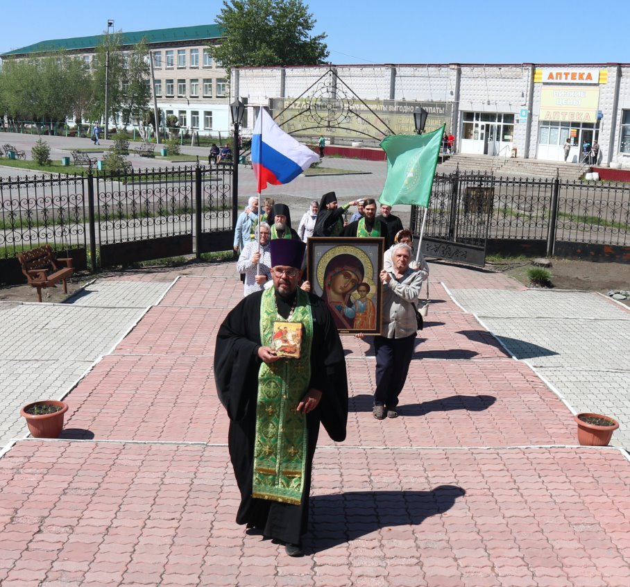 Из с. Новокрасного крестный ход направился в р. п. Чистоозерное и проследовал через центральную площадь районного центра к Успенскому храму, где крестный ход встретил его настоятель иерей Илия Березовский. В храме был совершен молебен Пресвятой Богородицы, в нем приняли участие священнослужители епархии, пограничники, казачество, прихожане и жители р. п. Чистоозерное.