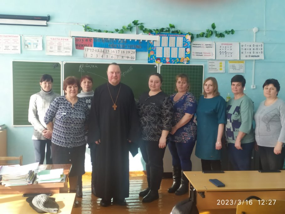 Батюшка обратился с напутственным словом к выпускникам школы и благословил их на успешную сдачу экзаменов.
