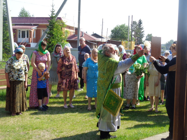Была совершена великая вечерня с прочтением коленопреклоненных молитв, после чего прошел праздничный молебен с крестным ходом вокруг храма.