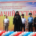 В своем слове иеромонах Мелхиседек поздравил всех собравшихся с началом фестиваля, передал благословение правящего архиерея Владыки Филиппа и сказал о важности сохранения духовно-нравственных традиций Церкви и казачества, напомнил, что главной целью взаимодействия епархии и казачества является воцерковление казаков и членов их семей, участие их в Таинствах Исповеди и Причастия. Таких казаков можно назвать «стержнем казачества, способных устоять при любых испытаниях и угрозах».