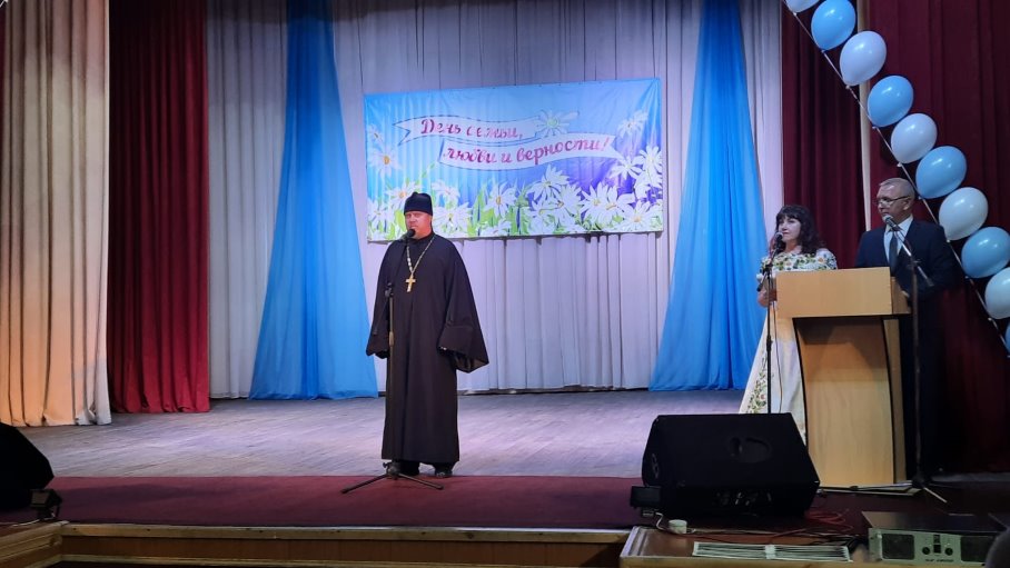 Иерей Михаил Прут, настоятель храма во имя святого апостола Иоанна Богослова с. Здвинска, поздравил присутствующих с праздником, рассказал о роли семьи в обществе, о защите церковью-семейных ценностей и пожелал всем семьям Божией помощи в жизни, а молодым — сохранение целомудрия.