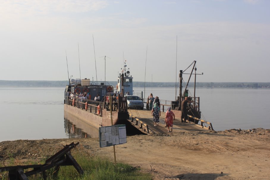 Добирались в храм и возвращались обратно через паромную переправу «Спирино-Чингисс». В этом году на радость паломникам на переправе работают 3 парома, которые курсируют каждые полчаса. Плыть на пароме в этот жаркий летний день было приятно: прохладный ветерок освежал и бодрил!