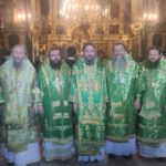Его Святейшеству за Литургией сослужили митрополит Ювеналий (Поярков); митрополит Ташкентский и Узбекистанский Викентий, глава Среднеазиатского митрополичьего округа; митрополит Санкт-Петербургский и Ладожский Варсонофий; митрополит Воскресенский Дионисий, управляющий делами Московской Патриархии, первый викарий Патриарха Московского и всея Руси по г. Москве; епископ Сергиево-Посадский и Дмитровский Фома, наместник Лавры; епископ Звенигородский Кирилл, ректор Московской духовной академии; собор архиереев Русской Православной Церкви, в числе которых епископ Карасукский и Ордынский Филипп.