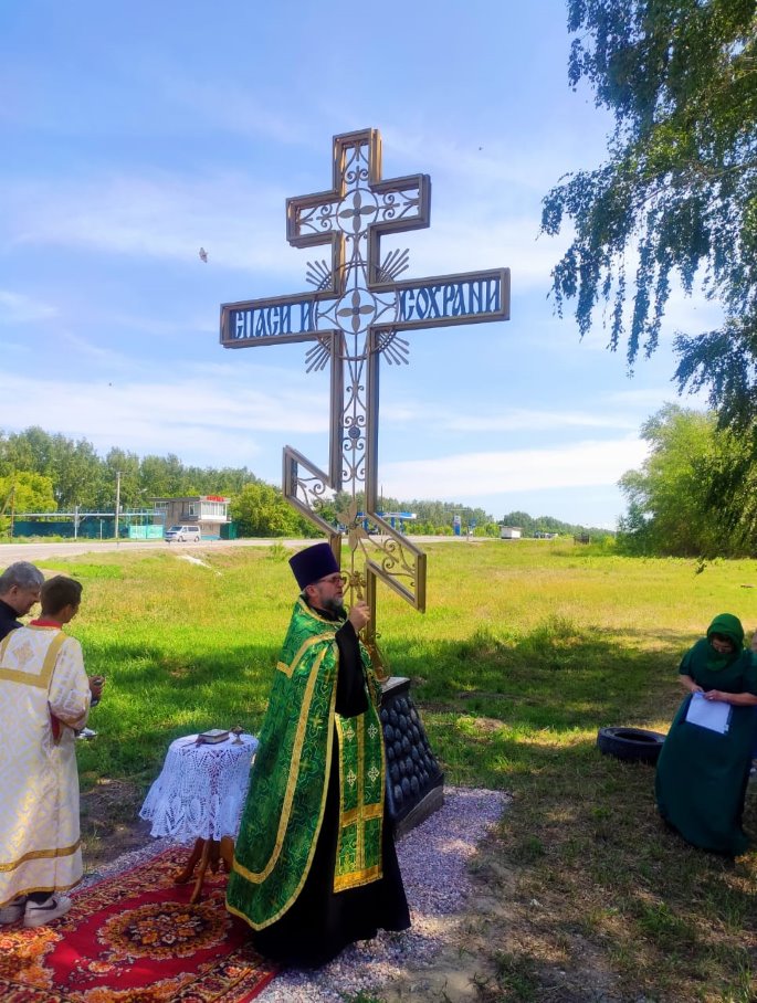 По благословению Преосвященнейшего Филиппа, епископа Карасукского и Ордынского, в этот праздничный день был совершен молебен и чин освящения поклонного креста на вьезде в р.п. Краснозерское. Это событие прихожане храма тоже ждали давно.