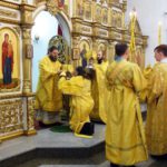 Божественную литургию возглавил секретарь Каинской епархии протоиерей Димитрий Бабкин. Ему сослужили благочинный Западного округа епархии протоиерей Александр Соловьев; настоятель храма в честь Покрова Пресвятой Богородицы р.п. Чаны протоиерей Николай Тукуреев; клирик Карасукской епархии иерей Михаил Прут; клирик Спасского кафедрального собора города Куйбышева иерей Павел Говоров; диакон Георгий Бекарев.
