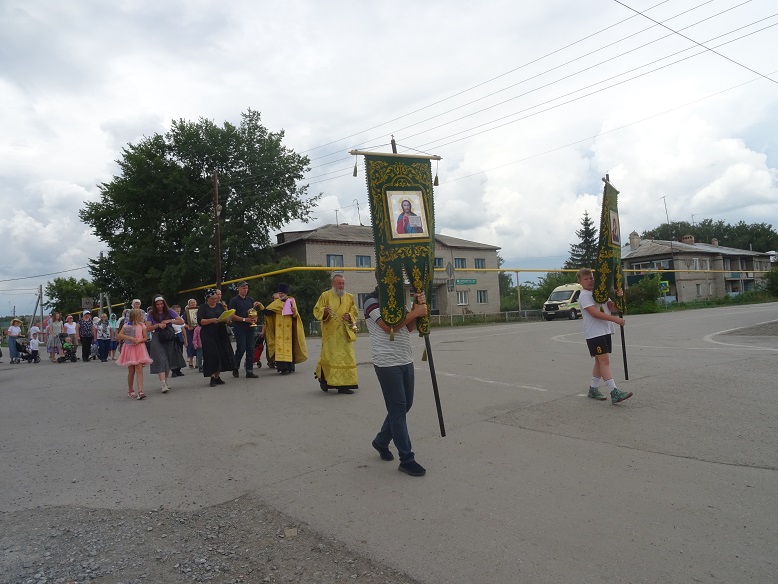 Крестный ход прошел от Дома культуры села, до поклонного Креста, установленного на месте последнего боя сибирских казаков с сибирским ханом Кучумом 20 августа 1598 года.