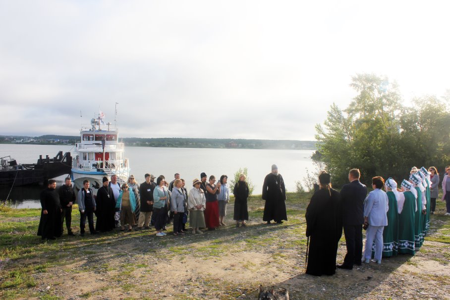 17 августа/четверг. Миссионерский корабль-церковь «Святой апостол Андрей Первозванный» прибыл в Ордынский район, где его на берегу Обского моря в 08:00 встретил Его Преосвященство епископ Филипп и глава Ордынского района Орел Олег Анатольевич.