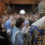 В пастырском слове перед причастным стихом протоиерей Евгений поздравил молящихся с праздником Успения Пресвятой Богородицы и престольным праздником храма и напомнил, что этот день — день завершения подвига жизни Девы Марии, день встречи Ее со Христом после долгой разлуки. «Дева Мария покинула Землю, но не оставила нас Своими молитвами и Материнской любовью», — сказал батюшка.- И вот уже в течение двадцати веков со всех концов Земли, как непрерывающийся поток, возносятся молитвы Божией Матери, Которой Спаситель с Креста в лице апостола Иоанна Богослова усыновил все человечество и которое чувствует эту Материнскую любовь».