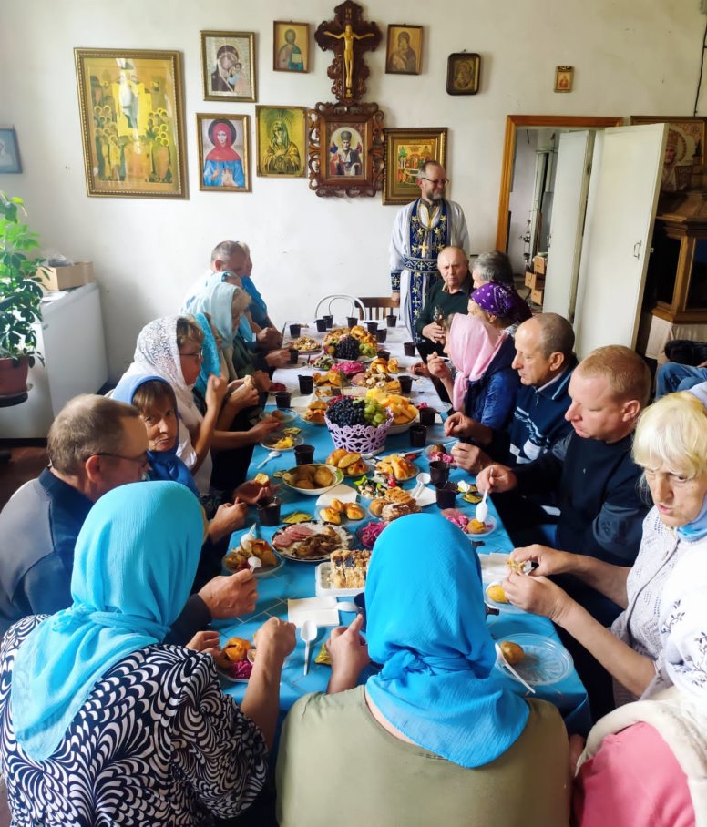 Богослужение закончилось праздничной трапезой, на которую протоиерей Евгений гостеприимно пригласил прихожан обоих храмов.