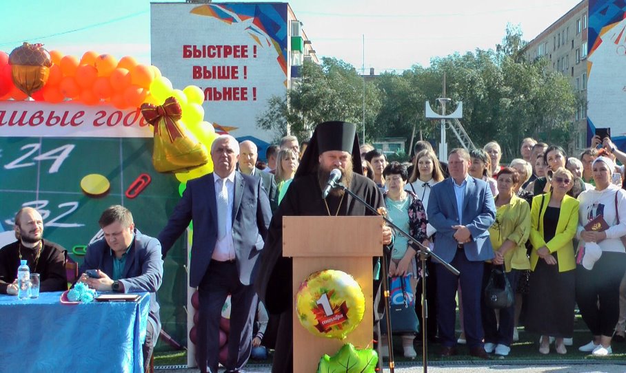 1 сентября 2023 года Его Преосвященство епископ Филипп принял участие в праздничной линейке учащихся МБОУ технический лицей №176 г. Карасука, посвященной началу нового учебного года.