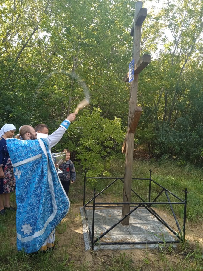 После Литургии иерей Антоний вместе с прихожанами освятил поклонный крест, который был установлен на месте бывшей церкви, которая стояла в с. Белом с 1905-го по 1934-ый годы.