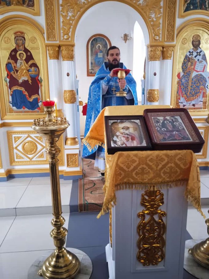 5 сентября, в день отдания Успения Пресвятой Богородицы, иерей Антоний Нечепоренко совершил Божественную литургию в храме во имя св. равноапостольного великого князя Владимира г. Карасука.