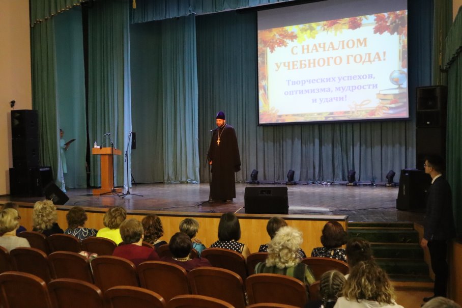 Иеромонах Мелхиседек поблагодарил учителей за совместное плодотворное сотрудничество, поздравил с началом нового учебного года и преподнес благословение на новый учебный год.