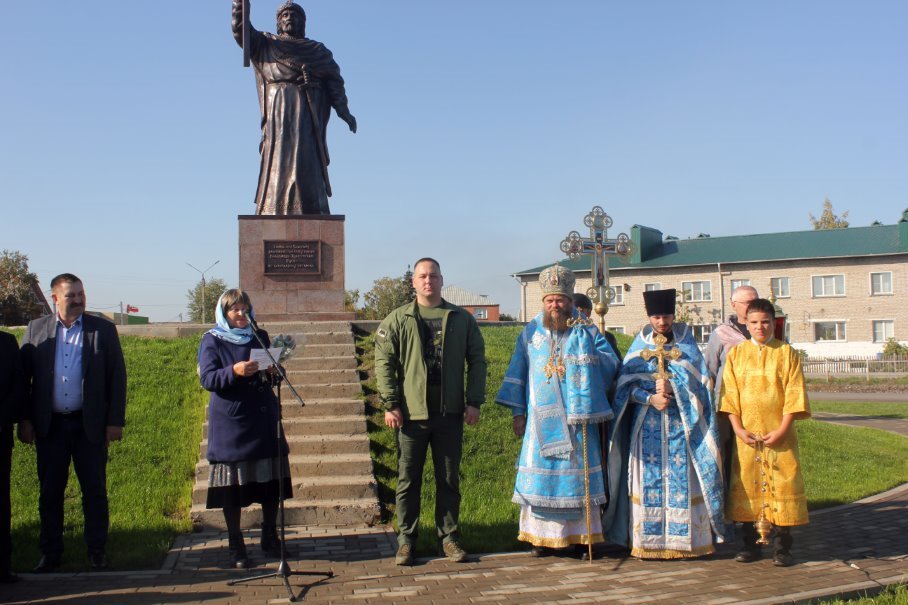 Далее к присутствующим обратилась Наталья Владимировна Сорокина, председатель Совета депутатов Купинского района. Она сказала о том, что идея благоукрашения исторического центра города наконец-то реализовалась и отрадно, что здесь стоит памятник нашему Просветителю Руси. Благодаря тому, что он принял православную веру и крестил свой народ, прекратились княжеские междоусобицы, произошло объединение княжеских земель и началось строительство русской государственности на православных традициях. Словами: «Мы молимся, чтобы такое объединение было и в нашем Отечестве, и на нашей Купинской земле», — она завершила свое выступление.