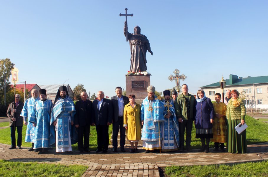 Здесь, на Новособорной площади города, в его историческом центре, Преосвященнейший Владыка Филипп в сослужении духовенства Карасукской епархии совершил чин освящения памятника св. князю Вадимиру — Крестителю и Просветителю Руси!
