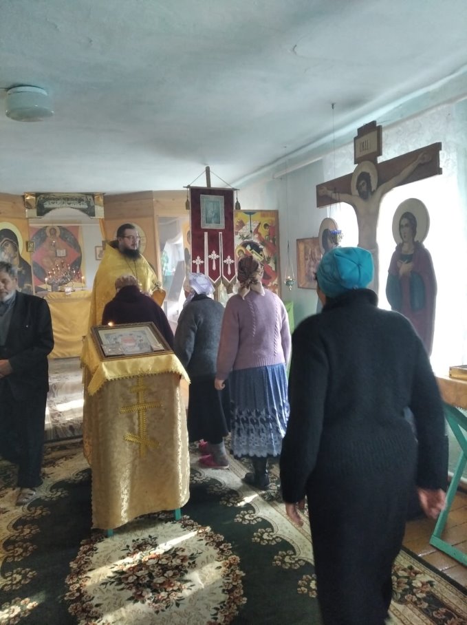 Накануне прихожане украсили цветами храм и Крест Господень. На богослужение приехали и пришли не только жители с Довольного, но и прихожане сел и деревень района.
