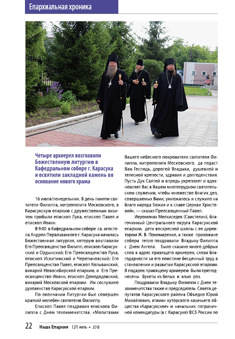 Наша епархия №27, июль 2018г.